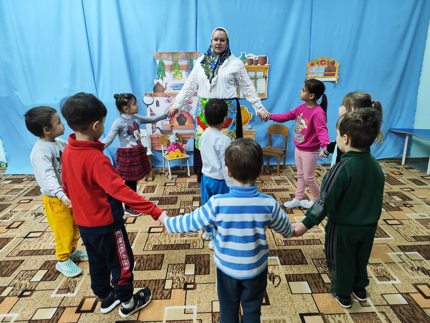 🔸 Младшие дети вместе со старшими разучивали простые скороговорки и хороводные движения.