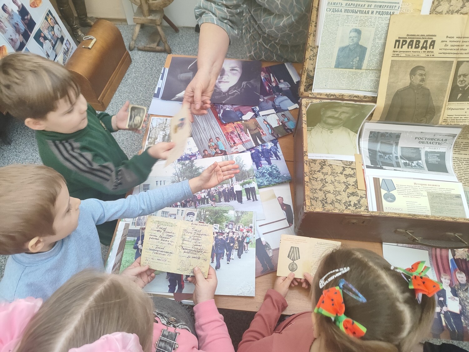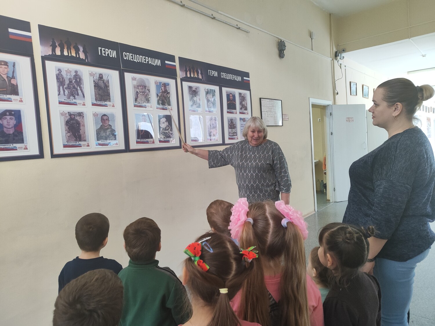 Ребята рассматривали фотографии ветеранов Великой Отечественной войны и участников СВО. Дети вглядывались в лица героев, задавали вопросы, учились понимать, что такое долг и честь.