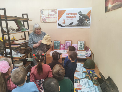 Воспитанники дошкольного отделения побывали в школьном музее в рамках месячника военно-патриотического воспитания.