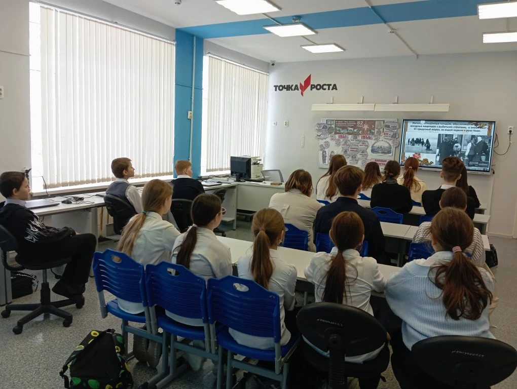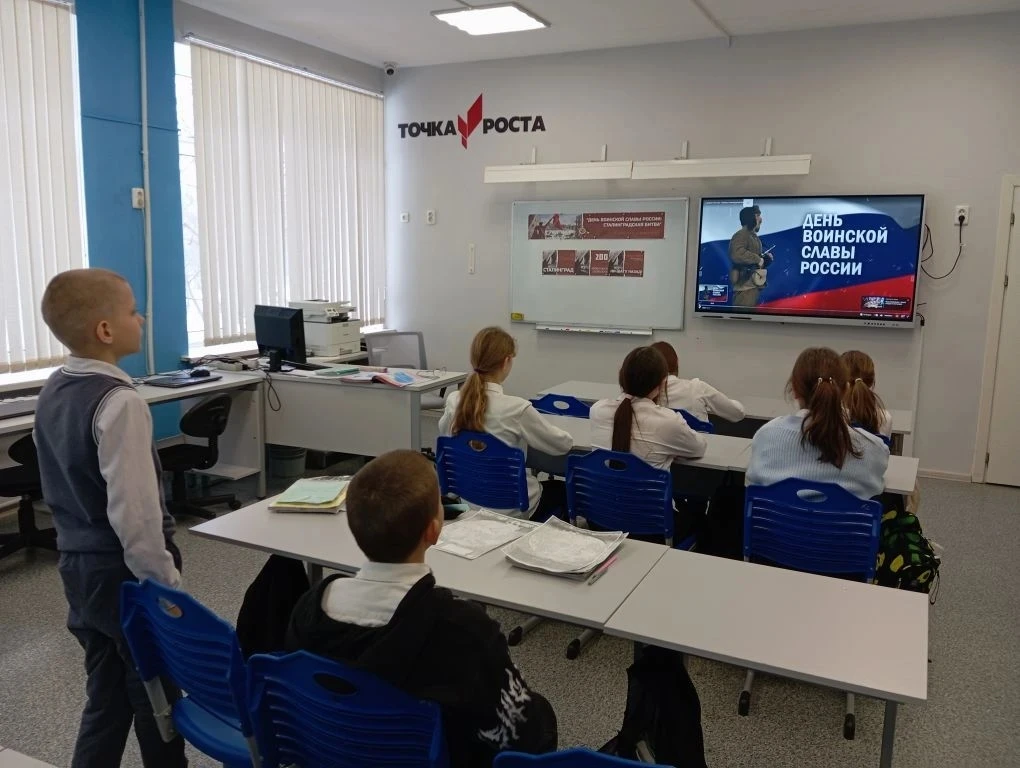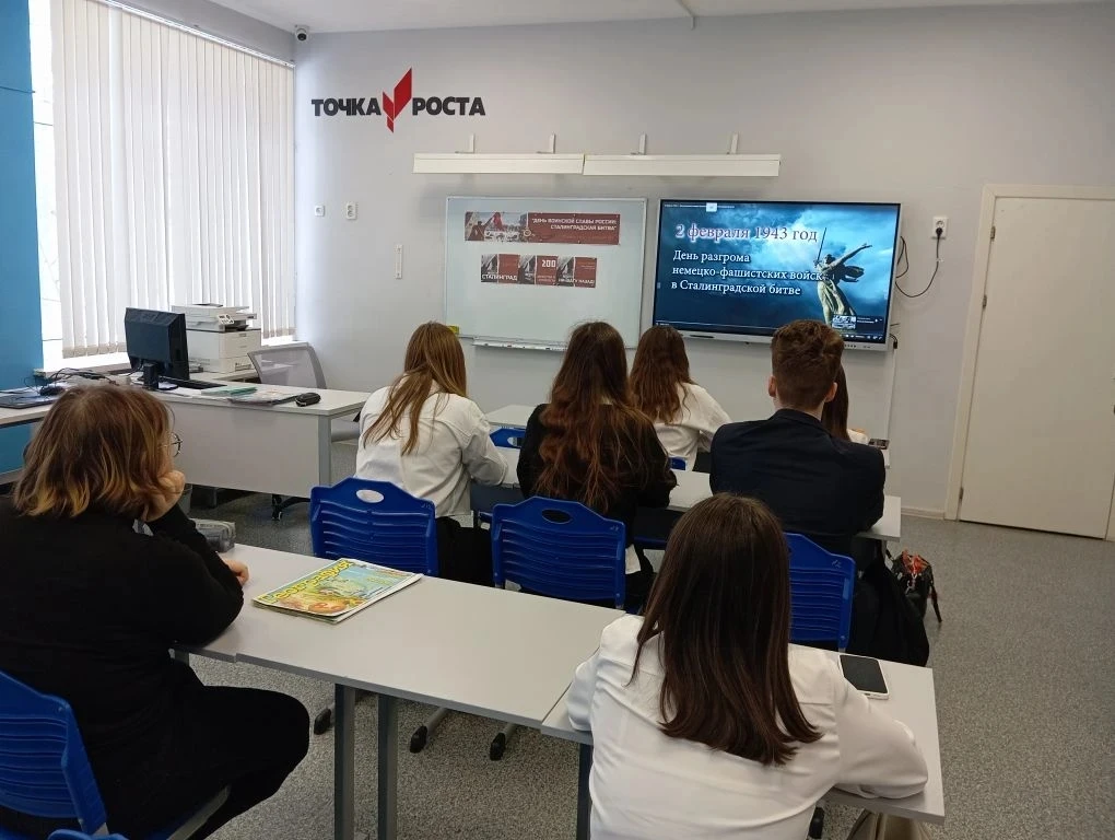 🎬 В честь праздника в нашей школе прошли специальные мероприятия: учащиеся 5 класса участвовали в музее-уроке «200 дней мужества и стойкости», а ученики 9 класса посетили урок мужества «Непокорённый Сталинград».