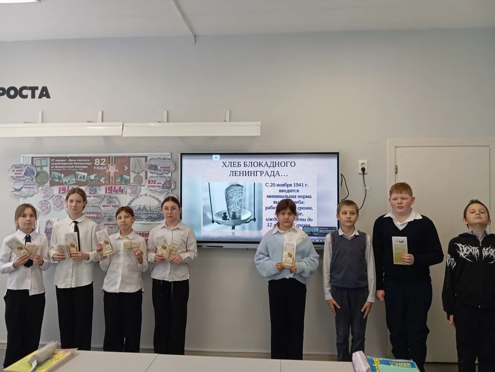 27 января 2026 года во всех регионах нашей страны проводились памятные мероприятия, посвященные 82 годовщине полного освобождения Ленинграда от фашистской блокады. В МБОО ПСОШ им.А.В.Калинина учащиеся 5, 8 , 9 классов и активисты школьного музейного кружка «Курс» присоединились к участию во Всероссийской Акции памяти «125 грамм с огнем и кровью пополам», которая призвана напомнить о мужестве жителей Ленинграда, переживших беспрецедентную блокаду миллионного города вражескими захватчиками. Блокада Ленинграда длилась 872 дня. И это не просто цифра - каждый день стал тяжелым испытанием в жизни блокадников. По разным подсчетам, в городе погибло от 692 тысяч до 1,5 миллионов человек – и 97% из них умерли от голода. Единственной надеждой на завтрашний день был паек. Буханка хлеба постепенно превратилась в 125-ти граммовый кусочек – именно такой была минимальная норма выдачи хлеба для жителей блокадного Ленинграда.