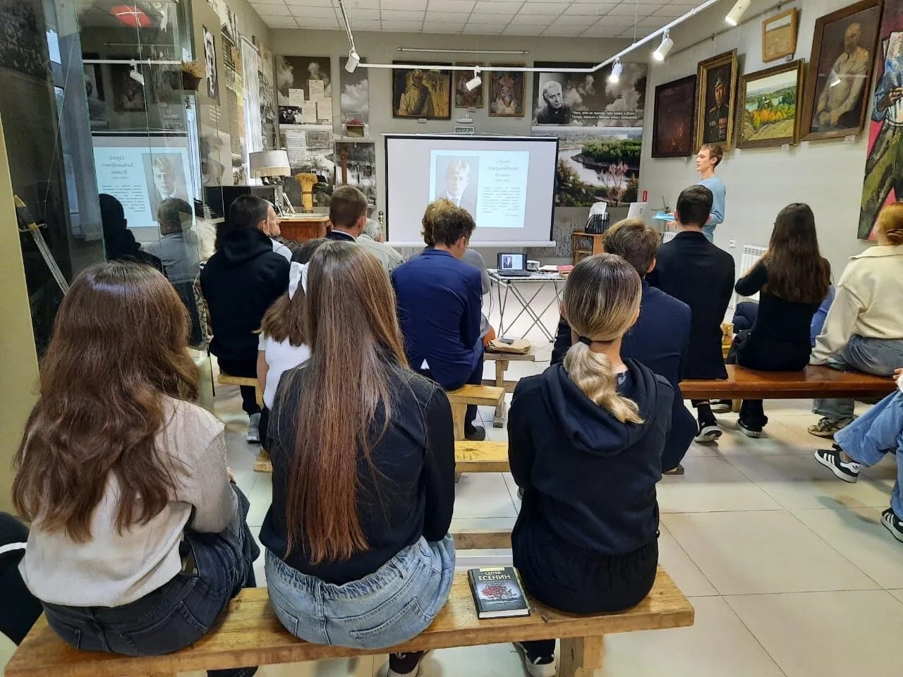 130 лет Сергею Александровичу Есенину. 12 октября в уютном зале выставочного зала Раздорского этнографического музея-заповедника, представляющего экспозицию «А. В. Калинин. Человек, писатель, гражданин» пошла литературная гостиная «Знакомый ваш, Сергей Есенин…» Библиотекарь Пухляковской сельской библиотеки и команда клуба «Читай-ка» совместно с учителем Пухляковской школы Кривошапко Светланой Владимировной и ее учениками-старшеклассниками знакомили участников и гостей с биографией и творчеством поэта. Никита Медведев и Касаркина Вика рассказали о детстве, Рома Шевцов, Соня Завберова и Даша Авилова о жизни , творчестве и загадочной смерти Сергея Александровича Есенина, Руслан Зямилов и Светлана Владимировна о любимых женщинах . Также читали любимые стихи Попова Виолетта, Кристина Моисеенко и Виктория, Золотарева Полина. Прозвучали и романсы