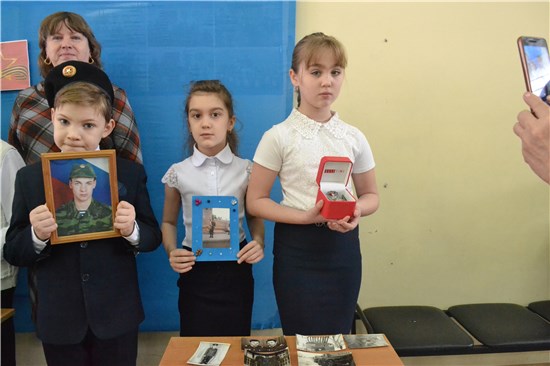 Так же участвовали непосредственно родственники учащихся, которые сами рассказали о предметах, которые принесли в школу и пообщались с учениками на тему службы в армии и значении термина Защитник Отечества.