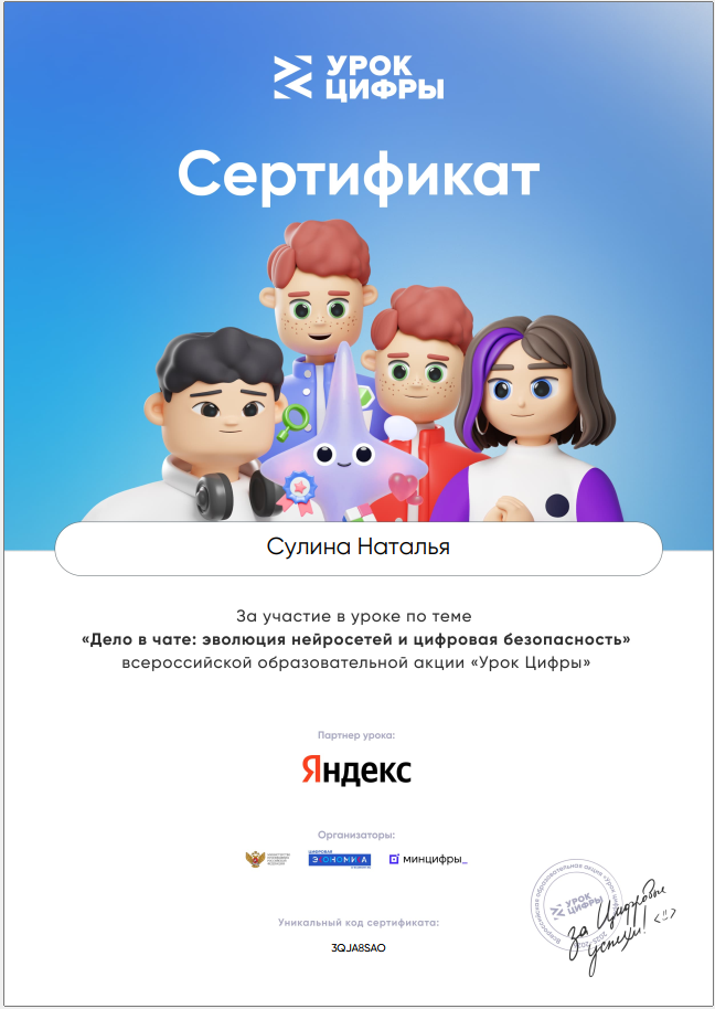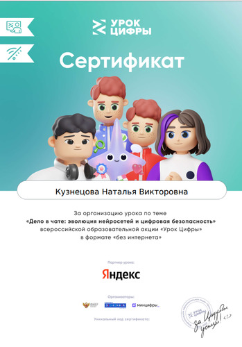 В уроке на тему «Дело в чате: эволюция нейросетей и цифровая безопасность» активно приняли участие ученики 4 класса, классный руководитель Кузнецова Наталья Викторовна