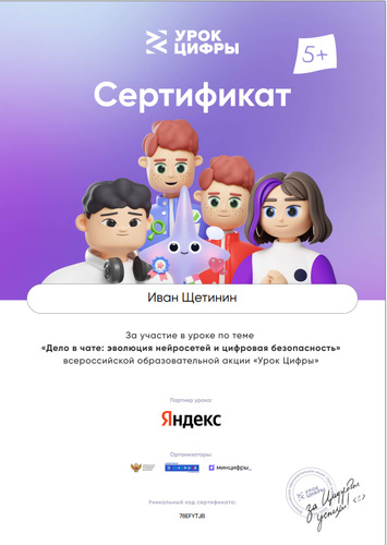 12.12.2025 запланировано мероприятие в рамках проекта по теме "Дело в чате: эволюция нейросетей и цифровая безопасность" для учащихся 9-11 классов |