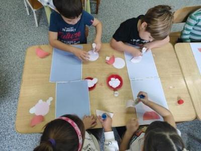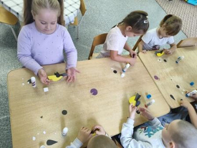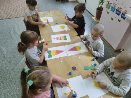 Сегодня в разновозрастной группе прошло тематическое занятие по аппликации «День рождения Буратино». Ребята с интересом включились в игровую ситуацию и успешно справились с заданием. На занятии закрепили умение создавать аппликацию из готовых геометрических форм. Так же развивалось умение следовать устной инструкции, мелкая моторика и зрительно- моторная координация.