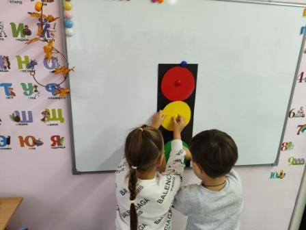 3 октября в СДП было проведено познавательное занятие по ПДД «Красный, желтый, зеленый». Главная цель этого мероприятия закрепить знания детей о работе светофора, знания правил перехода улицы; развивать ориентировку в пространстве, умение действовать по сигналу; развивать у детей разговорную речь. На занятии мы с ребятами сделали аппликацию "Веселый светофор", продолжая формировать умение детей составлять аппликацию из готовых форм.
